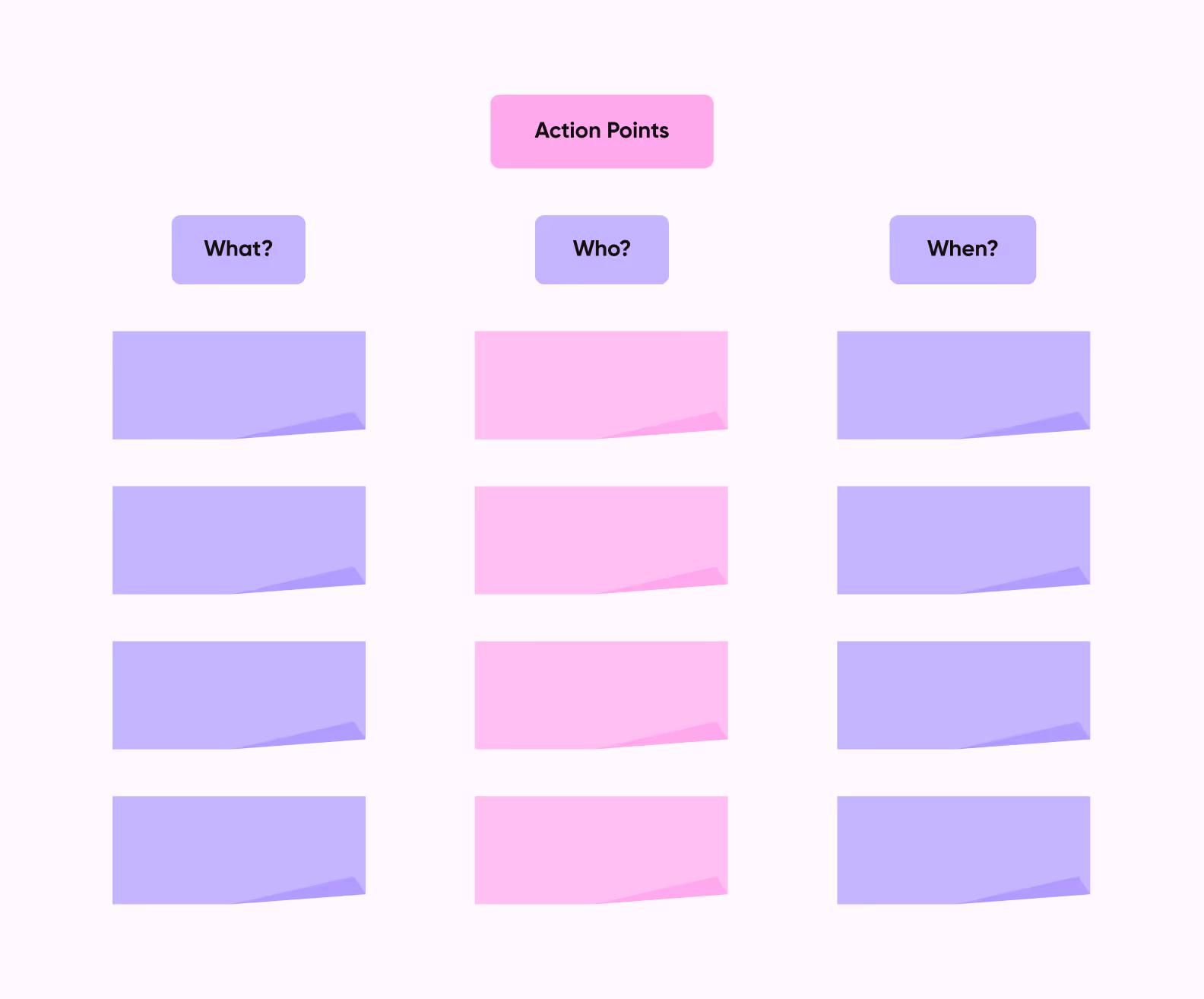 💡 As an option, you can exchange gratitudes at the closing stage. The teammates use the template to share something nice about the meeting. Such a positive closing cheers the team up. We need more of this at work.