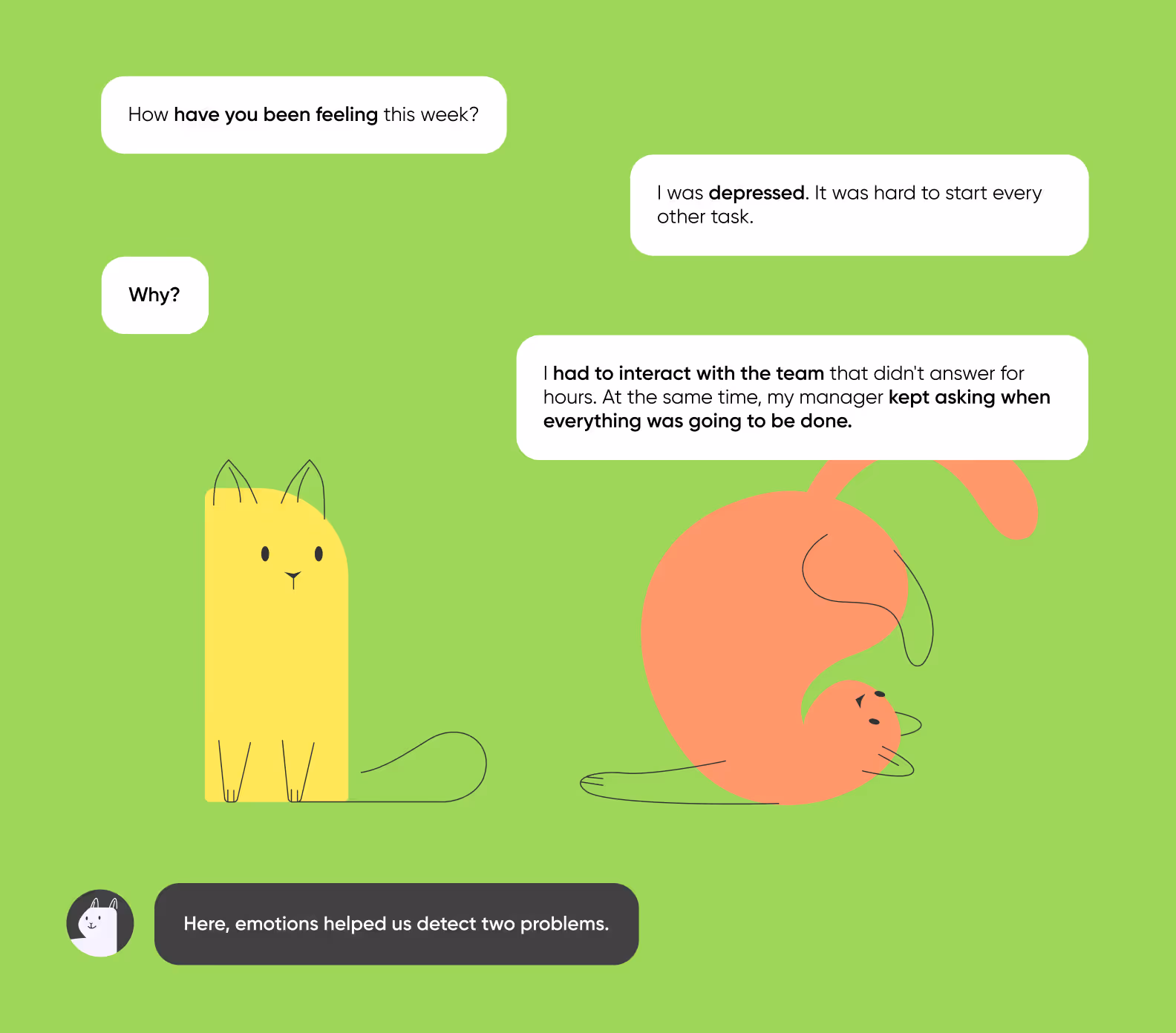 As we talk about feelings, we see it when our teammates are at risk of burnout or ready to leave. Besides, we notice conflicts and can influence them. It’s a simple fact but people forget about it.