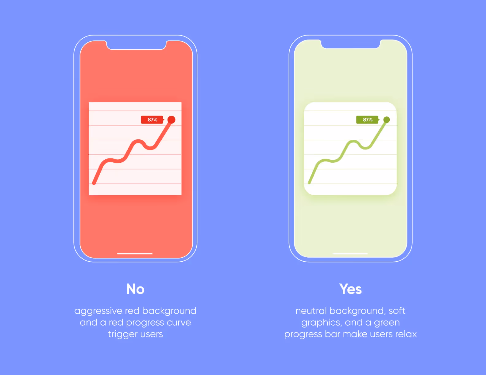 Your app design is the face of your product. A mobile app with a calm and friendly interface attracts new users who want to dive into app features and explore them. On the contrary, an aggressive and technically saturated design will alienate a potential user who wants to calm down and cope with stress.