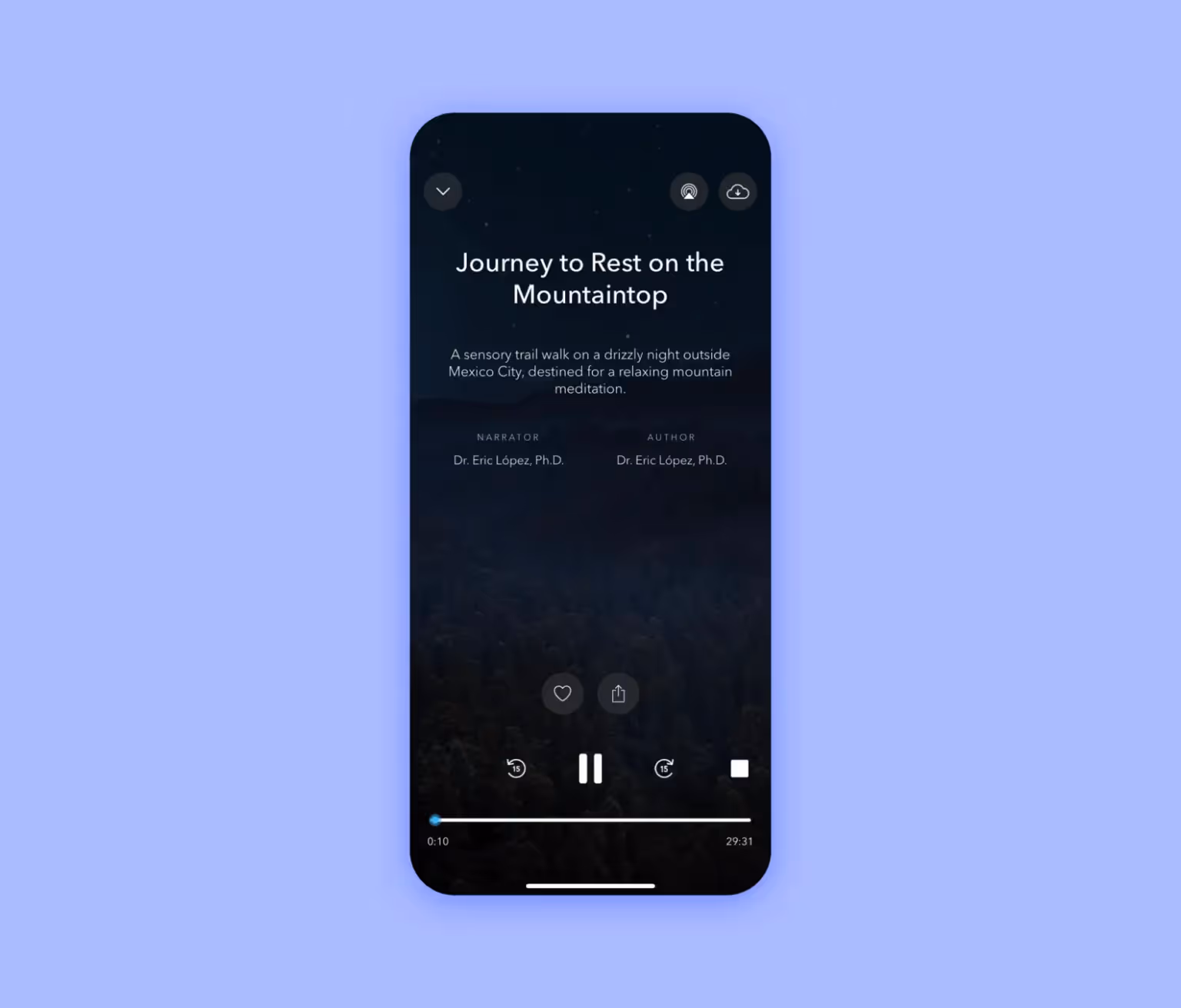 The target audience of the meditation app is the city residents who miss nature. Therefore, it’s a good idea to use photos of nature in your app prototypes: sea beaches, plants, clouds, mountains. Similarly, add soothing sounds to the meditation playlist, such as rain, rustling leaves, and crackling fire. If you’re developing a voice meditation app, the instructor’s voice must be calm and relaxed.