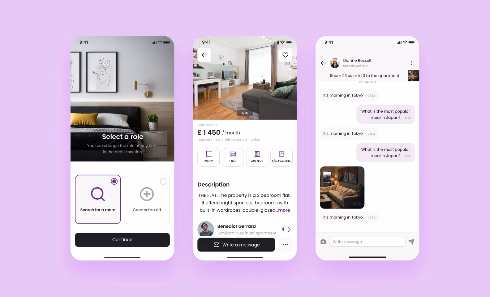 Our clients are three guys from London, their business is dedicated to startups and helping young entrepreneurs. Negotiations regarding the project began in the fall of 2020, but we started to work only in March 2021. They came to us with an idea — the Post-a-Room project — a mobile app for searching and submitting ads about renting rooms. But their goal was not just to make money or become a major representative in the niche. They wanted to collect information. In the app, tenants can find a room they like and chat with a landlord but the stage of meeting and signing contracts happens offline.