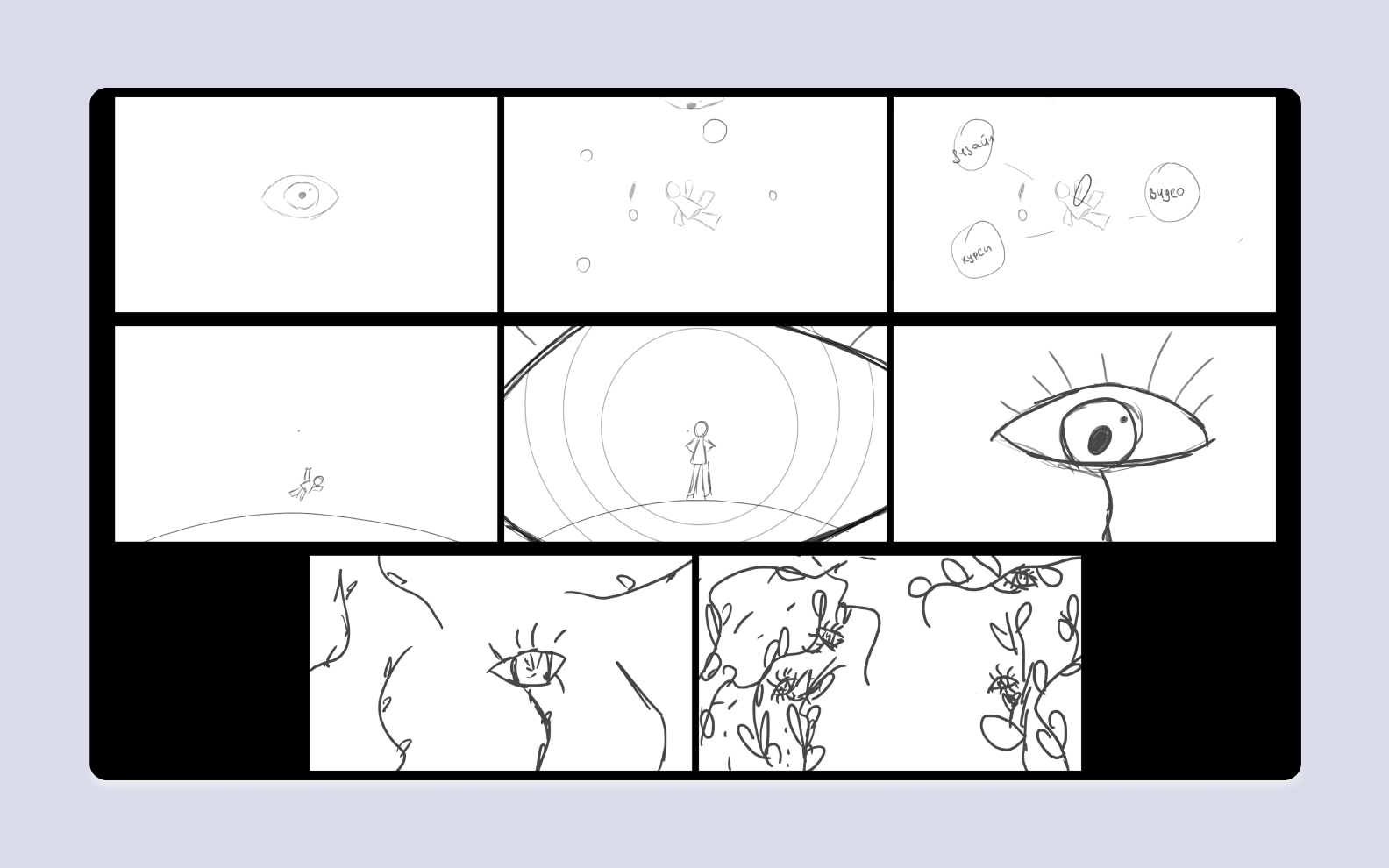 The static frames came to life when we made an animatic: a storyboard for the video without detailed visualization. It’s a bit like a B&W wireframe, where we determine the element layout for the UI.