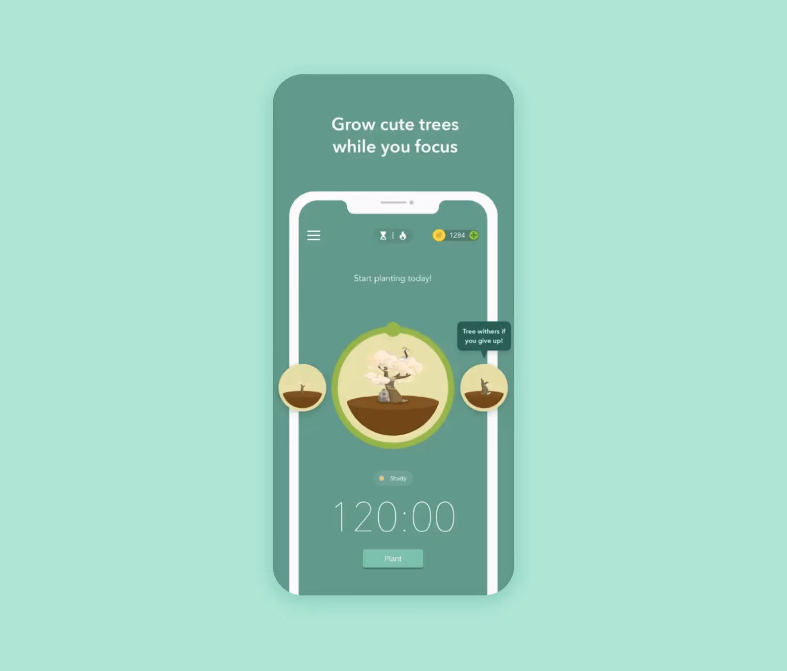 Photos of nature are an essential part of the meditation app design. Natural motives — water, stones, plants — relax well. The user can customize the screen to suit their mood.