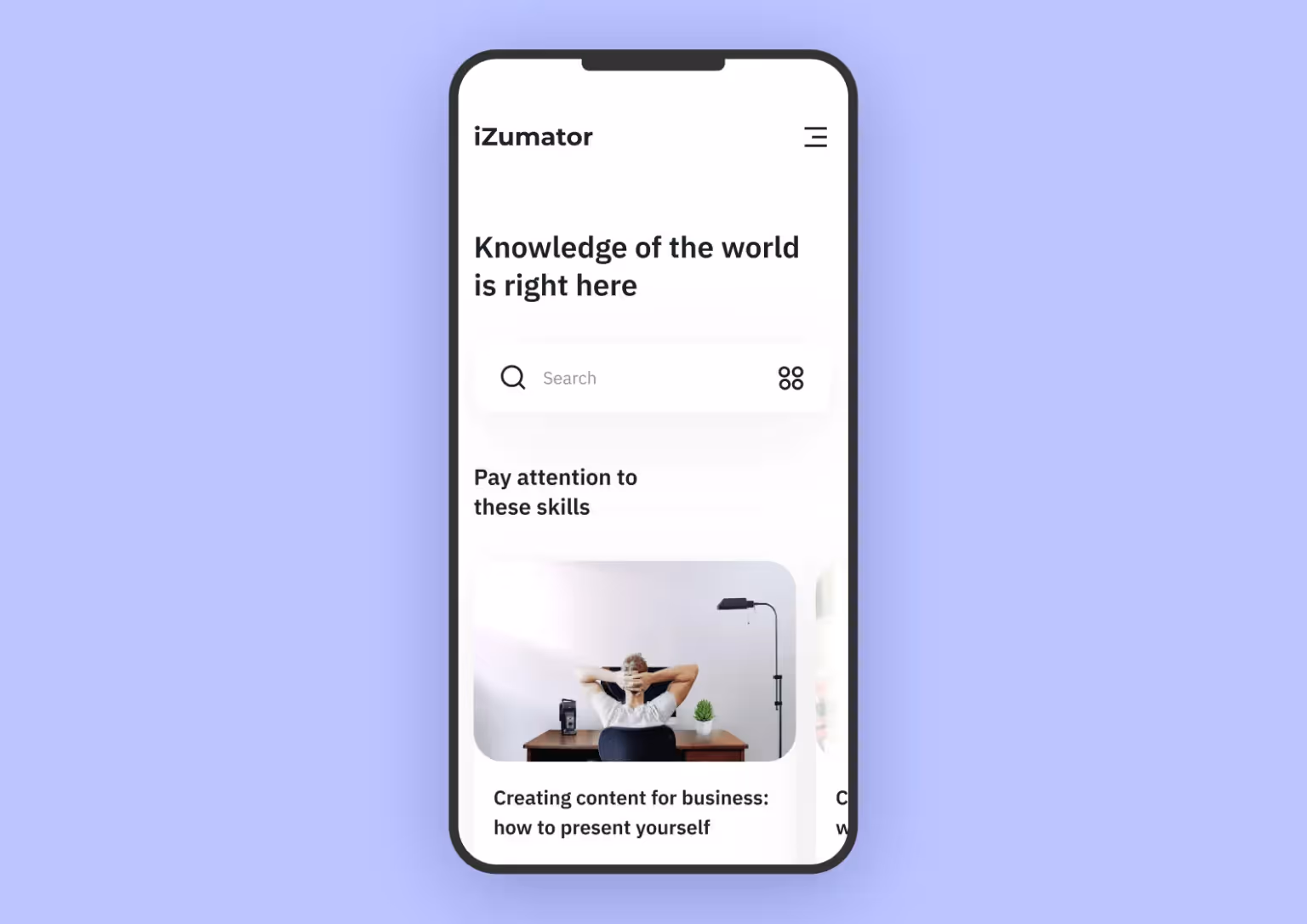 At Purrweb, we’ve followed the same process to create an e-learning platform iZumator. The platform allows users to create and pass courses. It also has a feature that makes it stand out in the market: any student can become the next mentor.