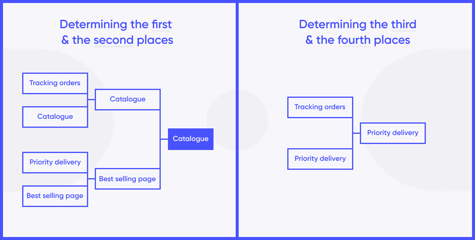Let’s say that as our MVP features example, we have four possible options. Above is what the choosing process will look like for the donut delivery MVP in a single elimination bracket.