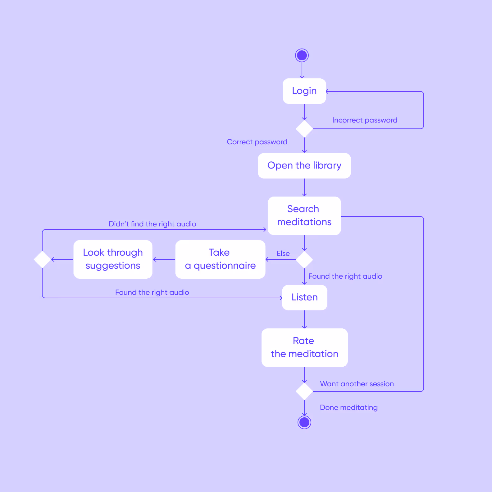 This is an activity diagram for our meditation app.