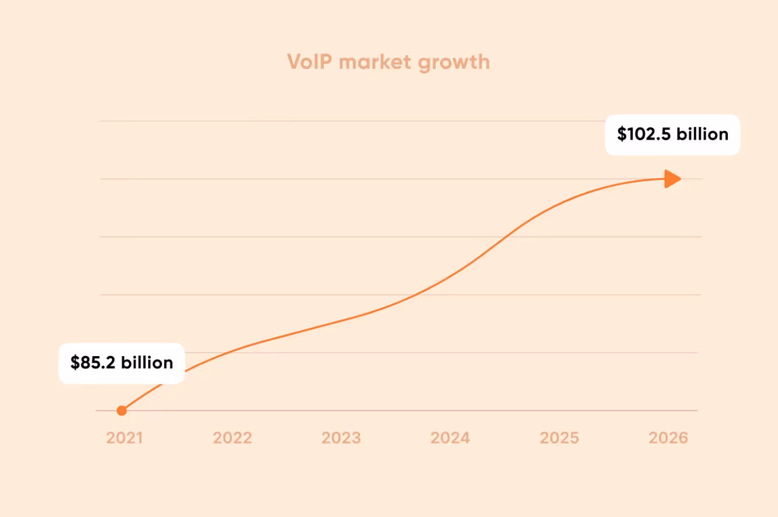 The main industry that uses the VoIP technology is messaging apps, primarily for mobile devices rather than desktop or web versions. The global market for VoIP services was estimated at $85.2 billion, and according to Research and Markets, it will grow to $102.5 billion by 2026.