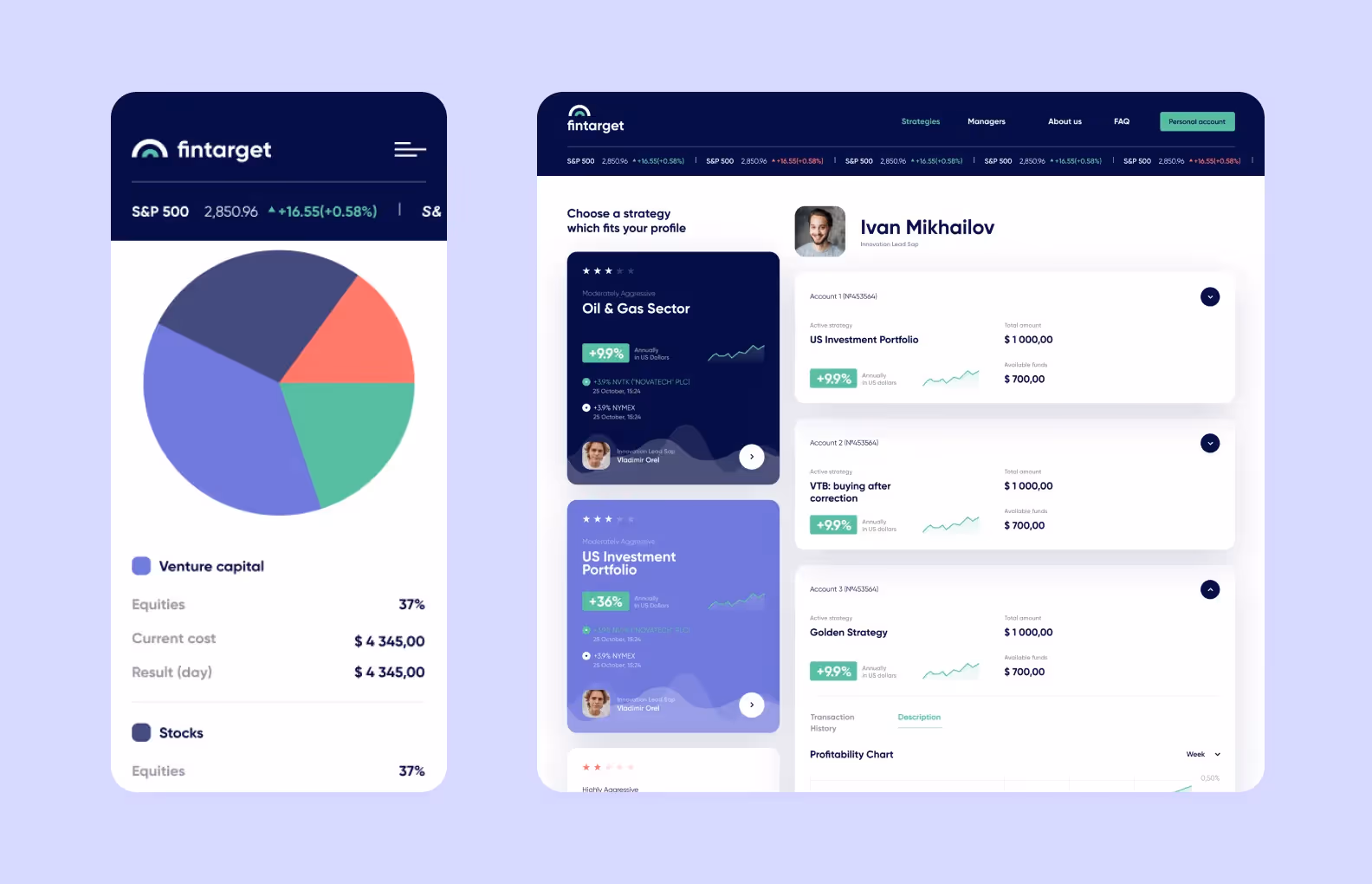 Fintarget is a platform for brokers and investors, which provides tools for searching and placing investment strategies and allows users to generate passive income.