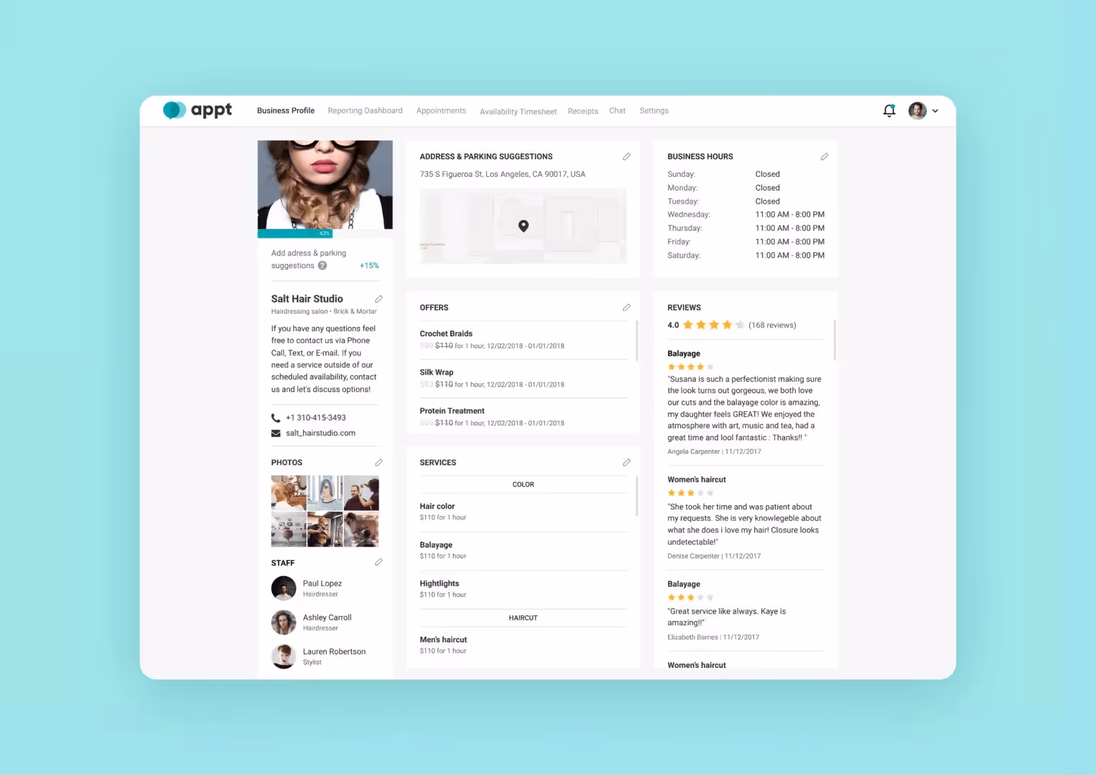 We added onboarding, a business profile, a reporting dashboard, appointment scheduling, and much more. Now entrepreneurs and businesses can establish their professional websites, showcase a range of services they offer, and let clients conveniently book service providers online.
