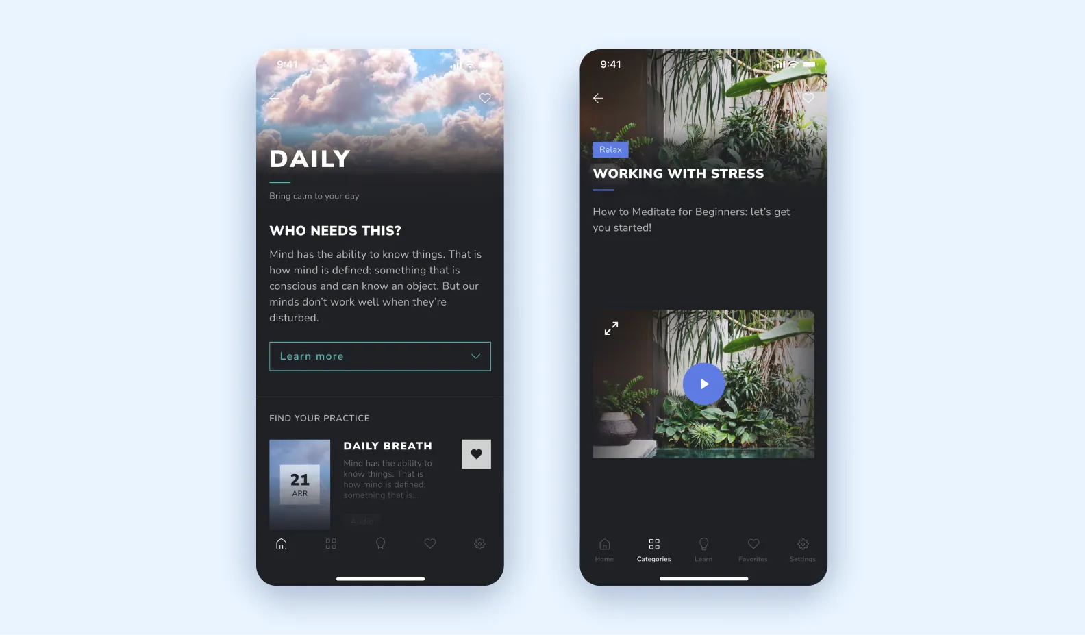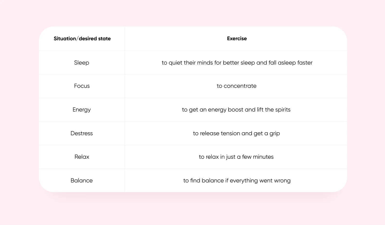 Most of the competitors lacked breathing courses. Moreover, the content in our app was original, and some exercises were unique — for example, the ‘breath pendulum’. The original content really motivated the client to develop the app.
