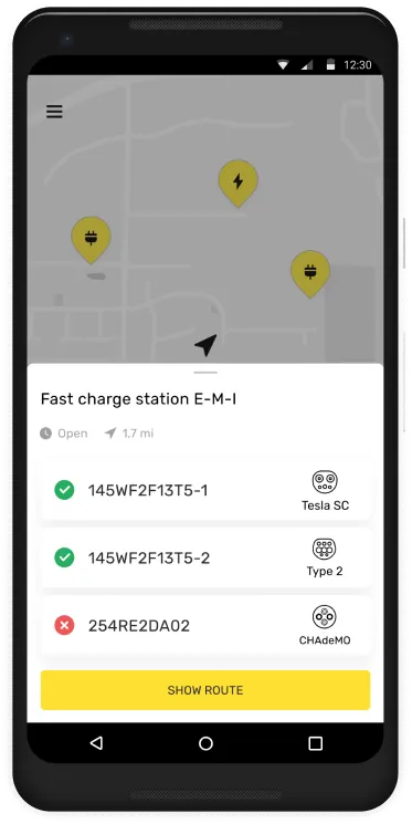 The app will show detailed information about a chosen station — the user gets to know what plug types are served by the station and which of them are currently available.