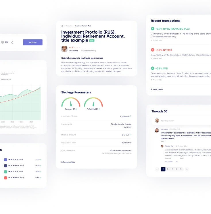 Dashboard with statistics of your account and performance of the acquired strategies - all the necessary indicators are clear, informative, and useful.