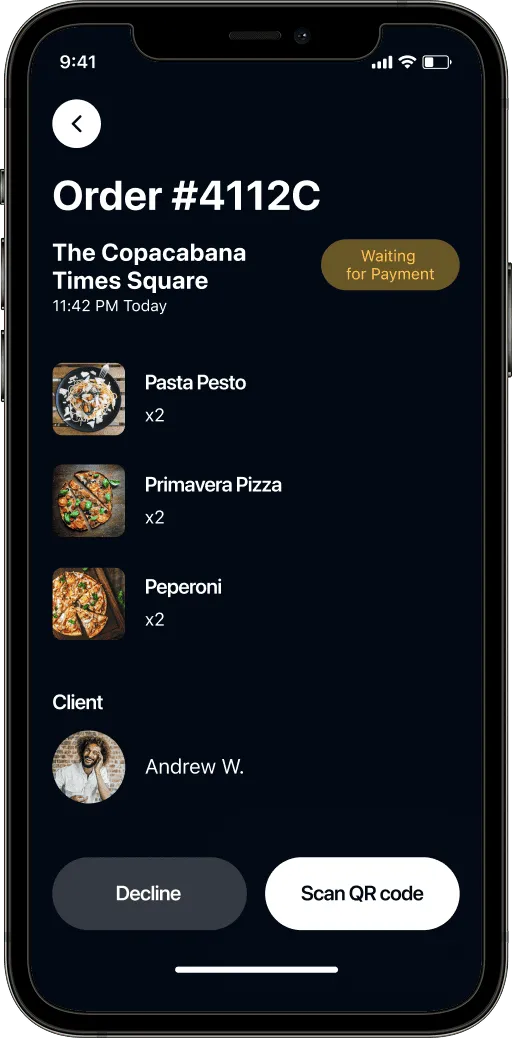 Initially, we planned to link a QR code to a particular order. It wouldn’t have been convenient for users,so we decided to change this flow of generation. Now the QR code is linked to the guest and all his/her orders are transmitted by it. This way we saved time for both the guest and the server.