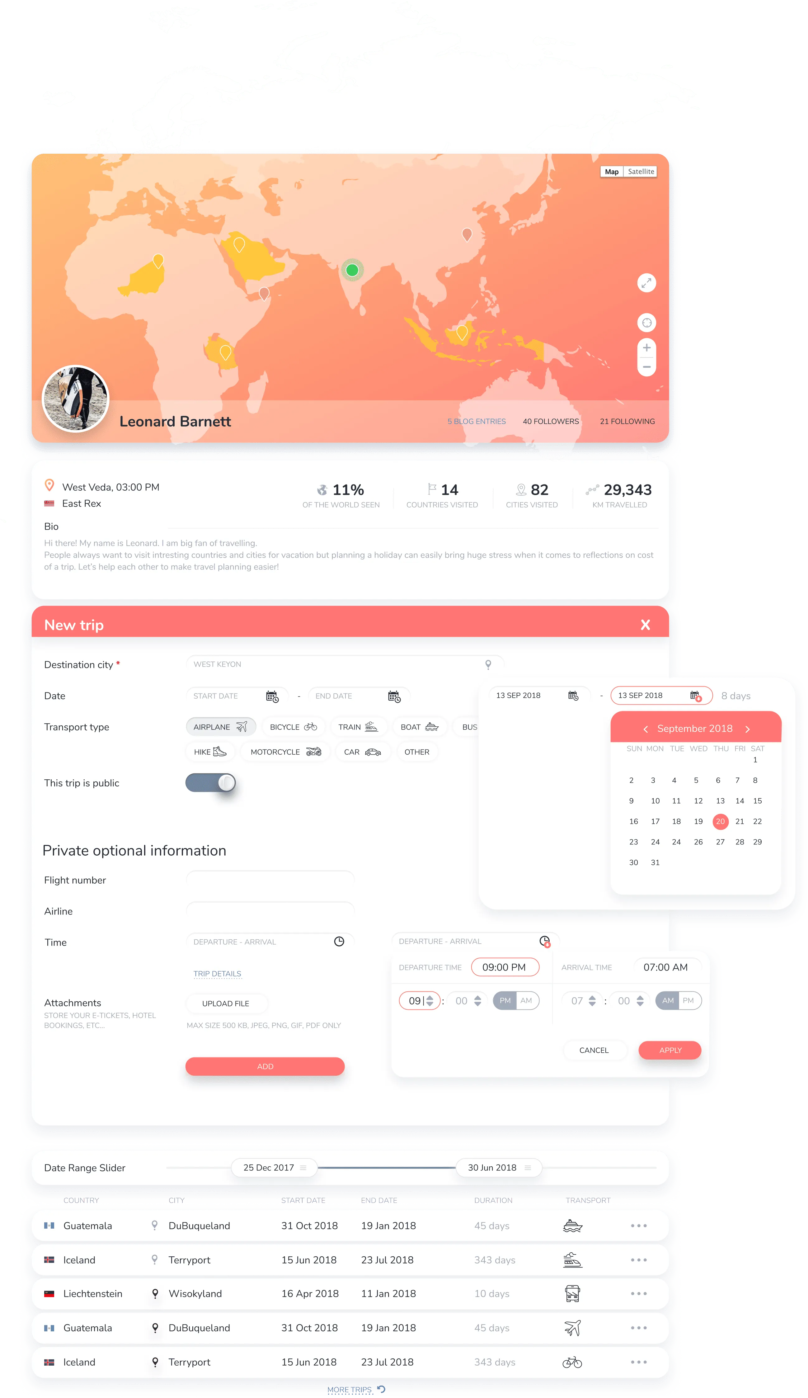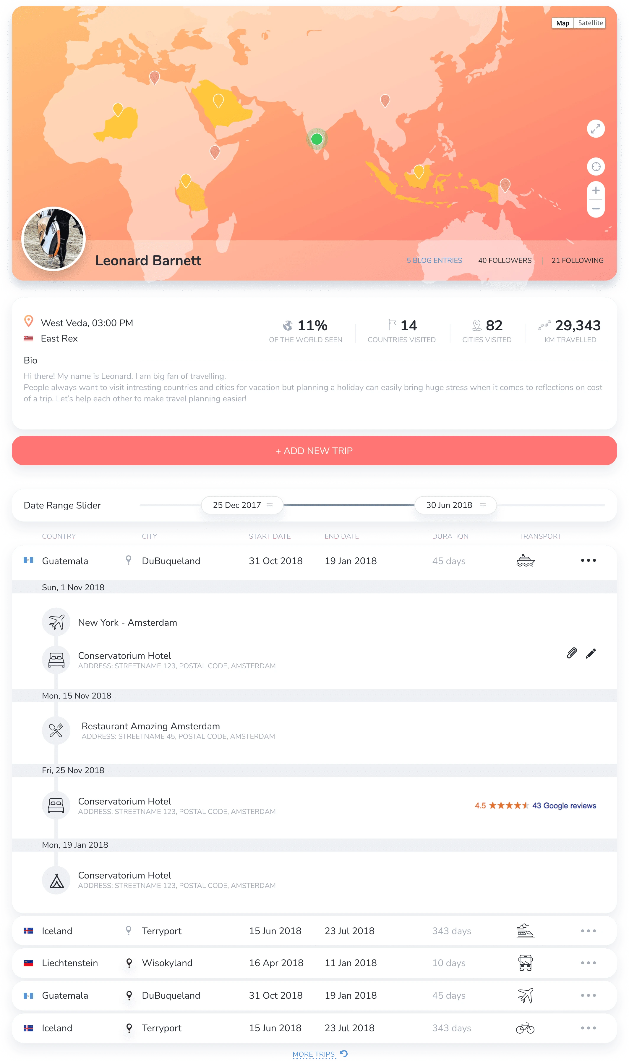 Interactive form page that makes the process of adding or editing the travel route smooth and painless.