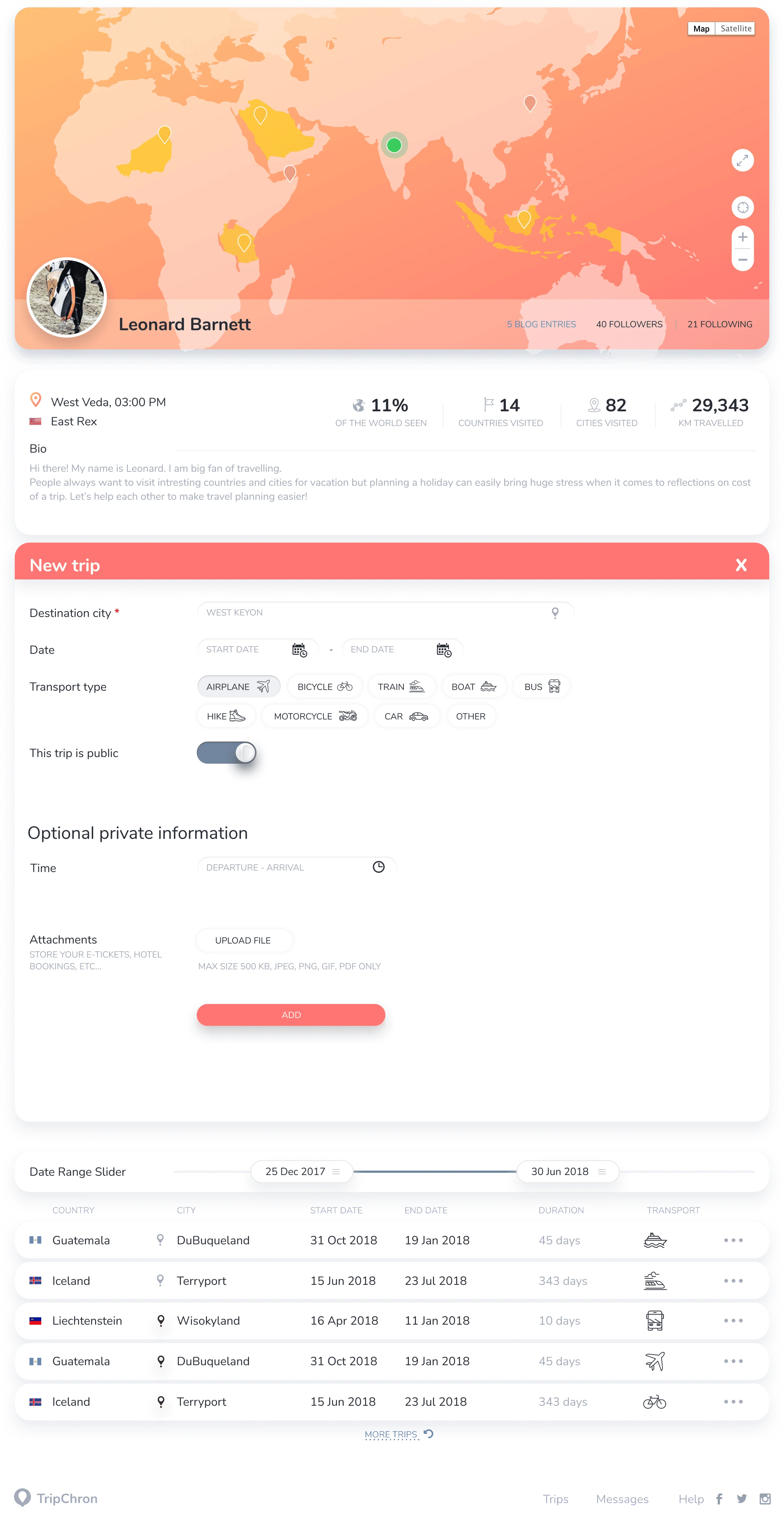 Tripchron is a social travel platform that allows to share your travel routes with fellows and follow other travel enthusiasts. People can inspire and be inspired by keen travelers who are willingly share and comment travel itineraries.