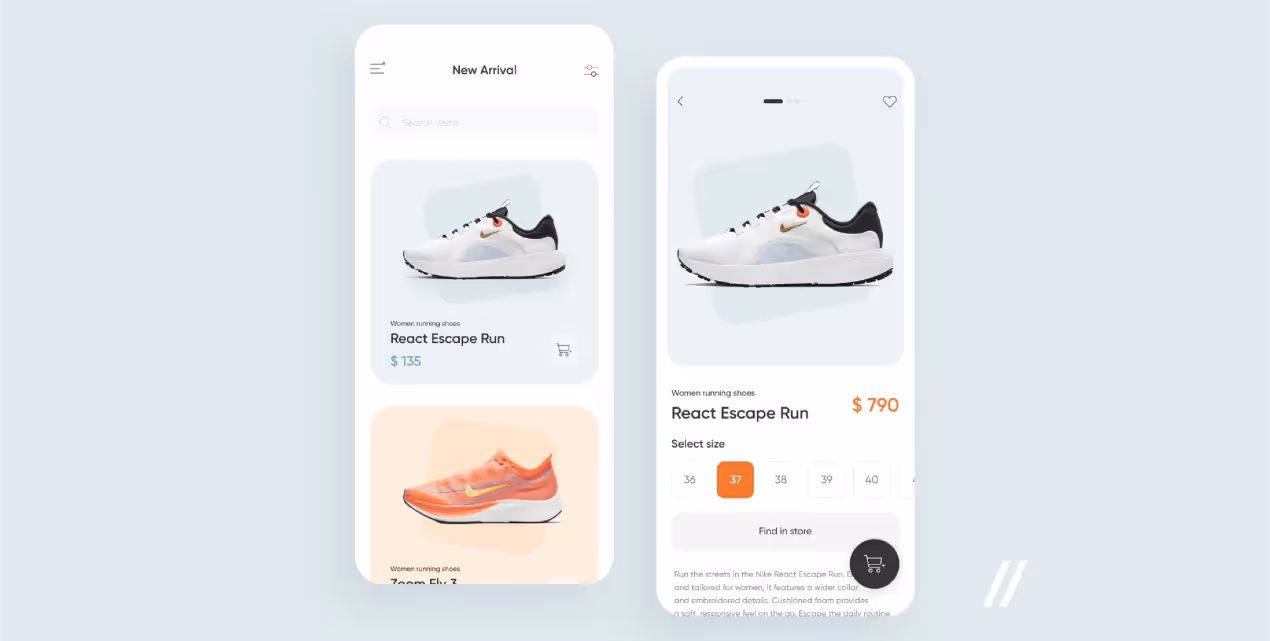 Вот пример УТП из нашего опыта. Мы работали над решением для магазина кроссовок для нашего клиента. Их идея заключалась в том, чтобы объединить новинки от разных брендов в одном приложении с удобными фильтрами. Такое решение помогло пользователям сэкономить время, которое они тратили на поиск новинок.