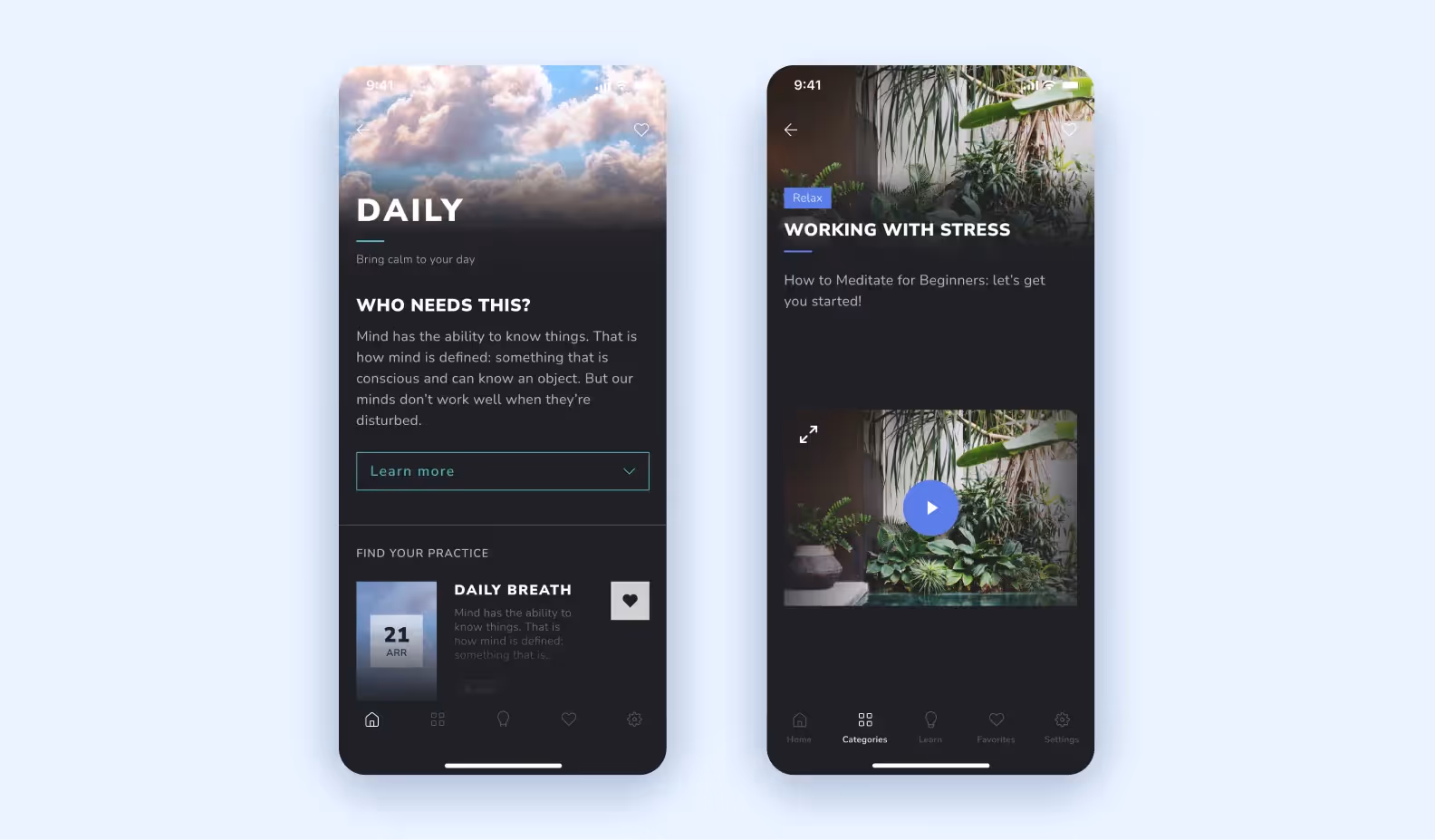 Каролина и Доминик из Сингапура обратились к нам в мае 2020 года с просьбой разработать UI и UX дизайн для приложения с дыхательными практиками. У заказчиков была экспертиза и клиентская база: до карантина Каролина преподавала йогу и дыхательные практики, а с приходом пандемии перенесла свои занятия в Zoom. Доминик интересуется воздействием дыхания на человека. А у нас был опыт разработки похожего приложения для сна.
