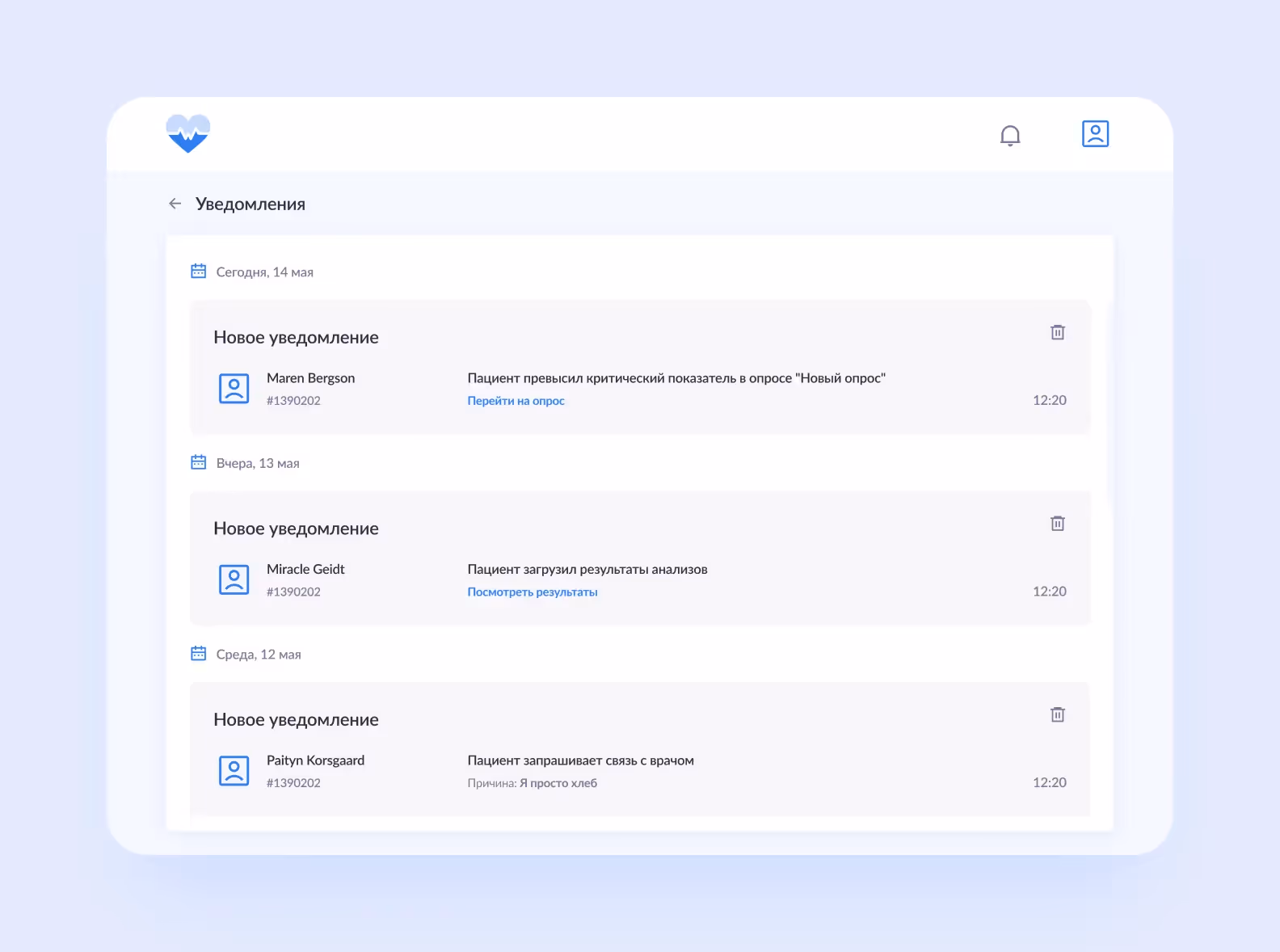 Польза для врачей в том, что они могут просматривать результаты опросов в любое время, а также, если какой-то из показателей превысит критическую норму, сразу получат уведомление