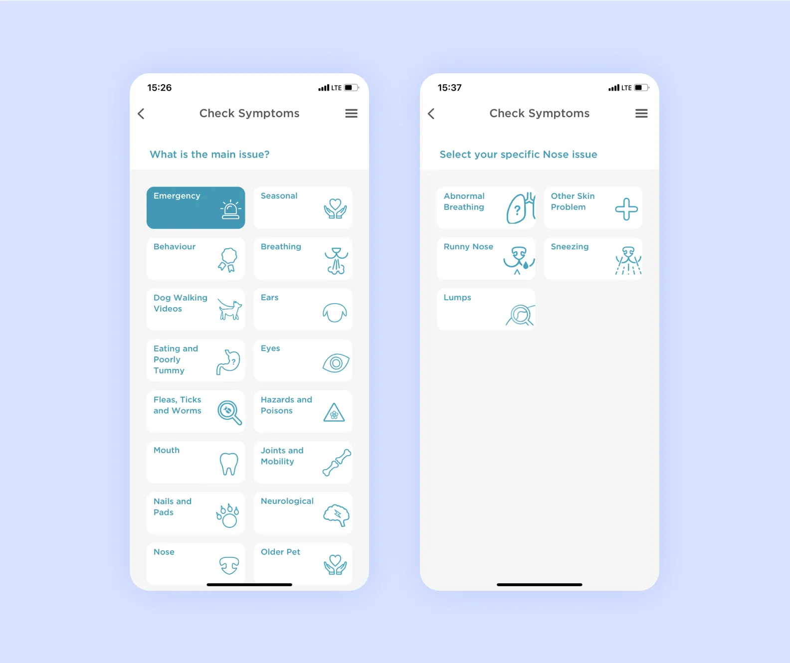 Однако уникальная функция Joii Pet Care — это бесплатный интерактивный сервис по проверке симптомов. Пользователь может указать, что беспокоит его питомца, и приложение посоветует ему дальнейший план действий.