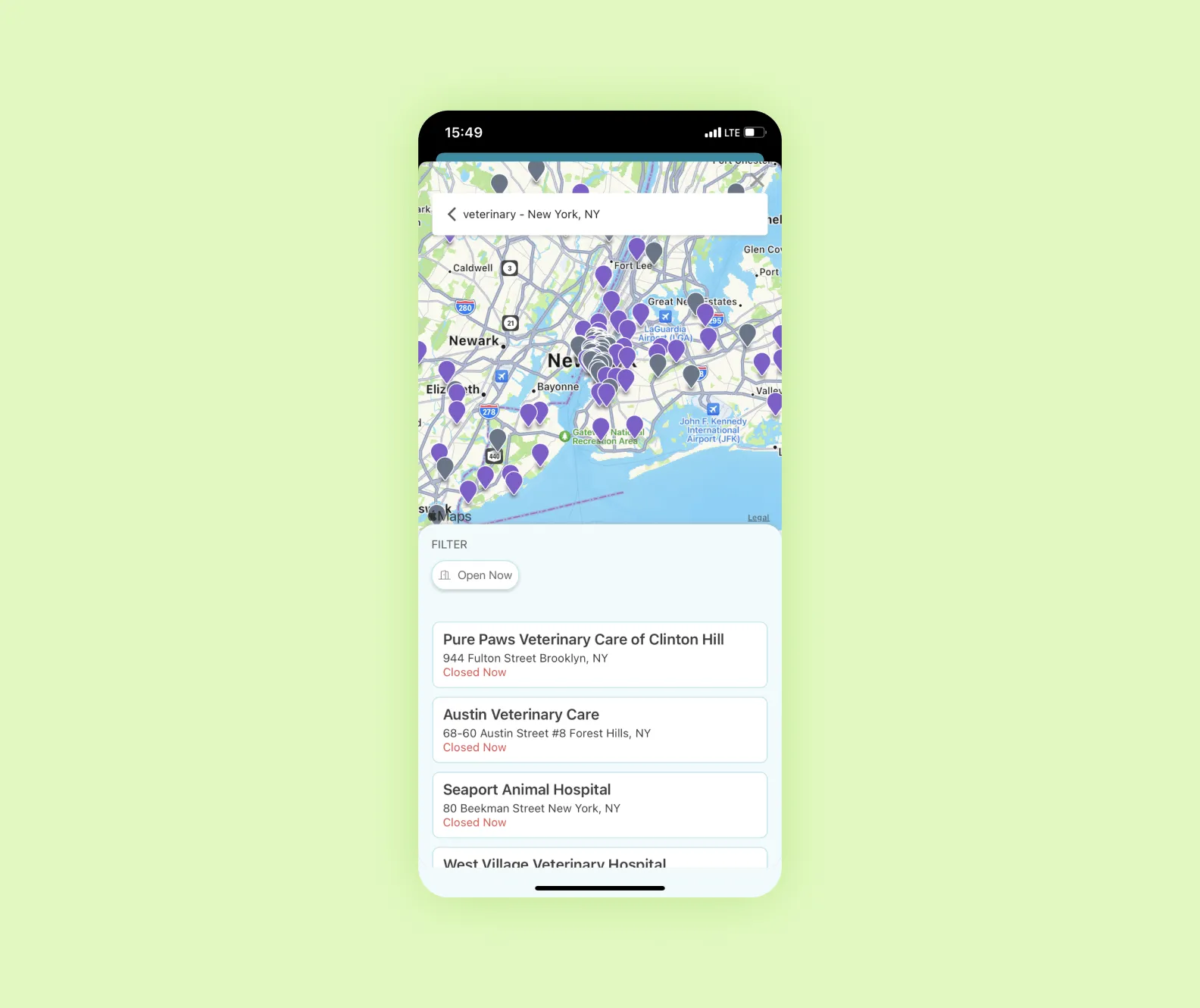 Интеграция с GPS-сервисом позволит клиентам быстро находить ближайшие к ним ветеринарные центры. В обычных условиях это просто удобно, а в критических ситуациях может даже спасти жизнь.