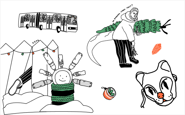 Заказчик хотел обыграть эту деталь из романа и фильма «Петровы в гриппе». Автобус заезжает на остановки с новогодними сюрпризами