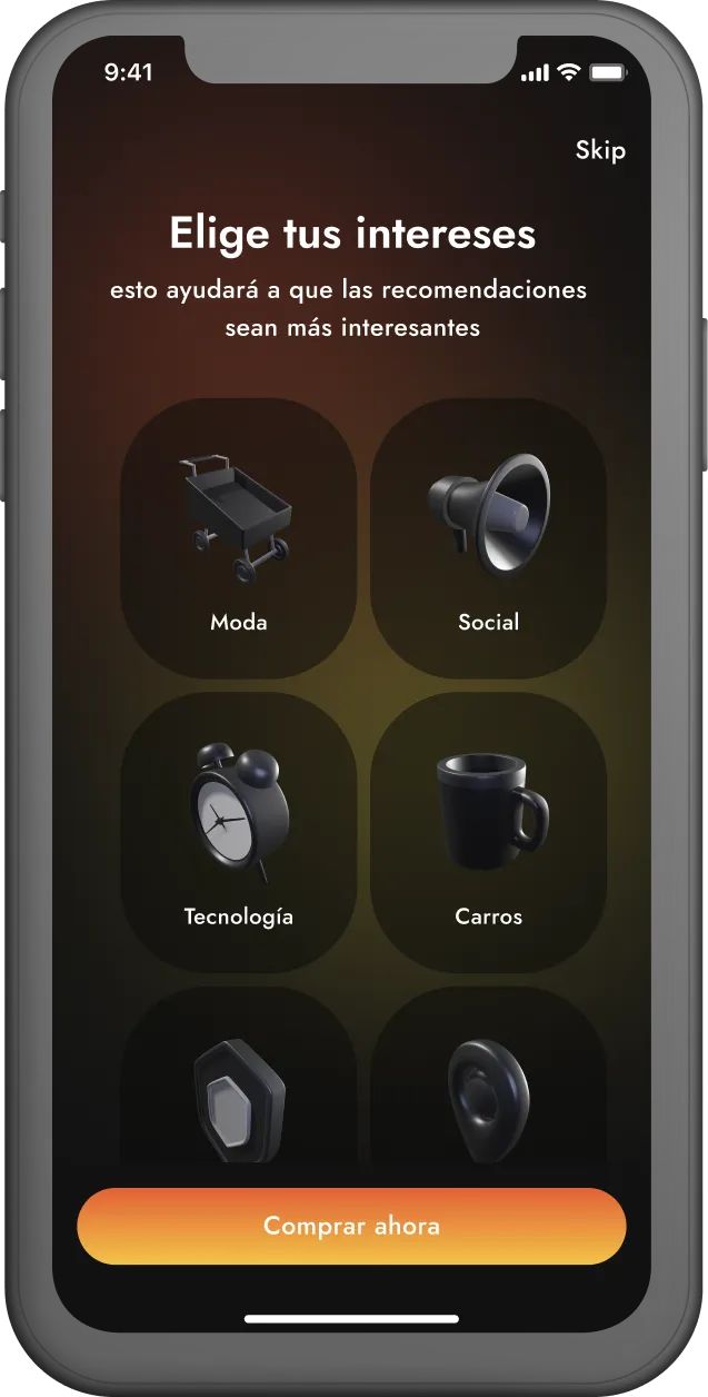 Оранжевый цвет задает приложению позитивный и энергичный тон. Теплые оттенки отлично подходят для ниши развлечений. Градиент выглядит современно и не нуждается в дополнительных элементах