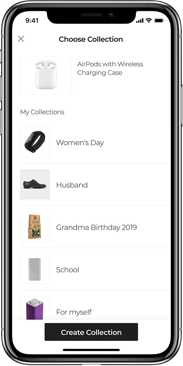 Удобный в использовании интерфейс вдохновляет пользователей организовывать списки товаров, которые они бы хотели подарить