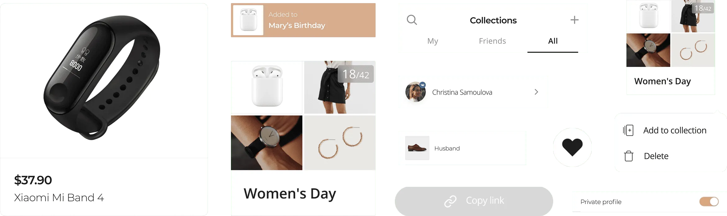Главным приоритетом было удержать пользователейв приложении. Поэтому мы добавили возможность находить коллекции друзей и делиться своими коллекциями.